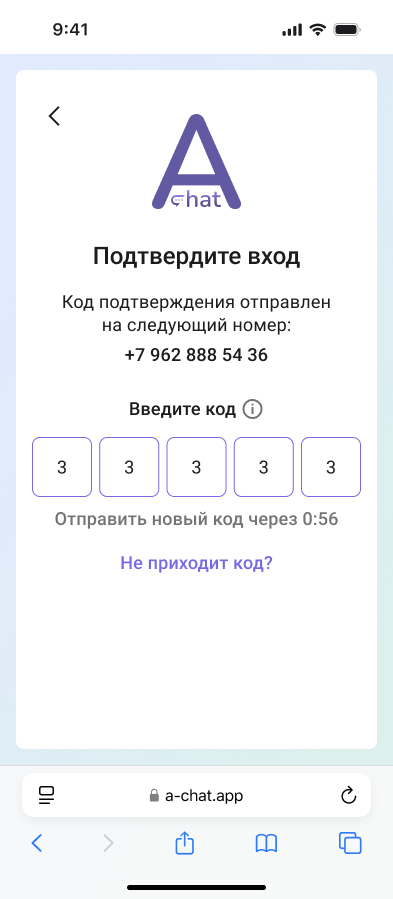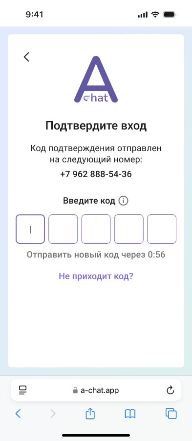 Phone number entry — minimal and intuitive. No unnecessary fields — just the number. This lowers the entry barrier and speeds up the login process.